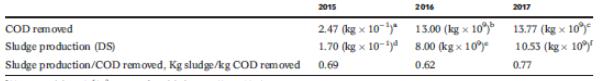 d 污泥產(chǎn)生(DS),kg x 10 -1 /米 3 ,市政污水處理廠的平均值(CUWA 2016)。