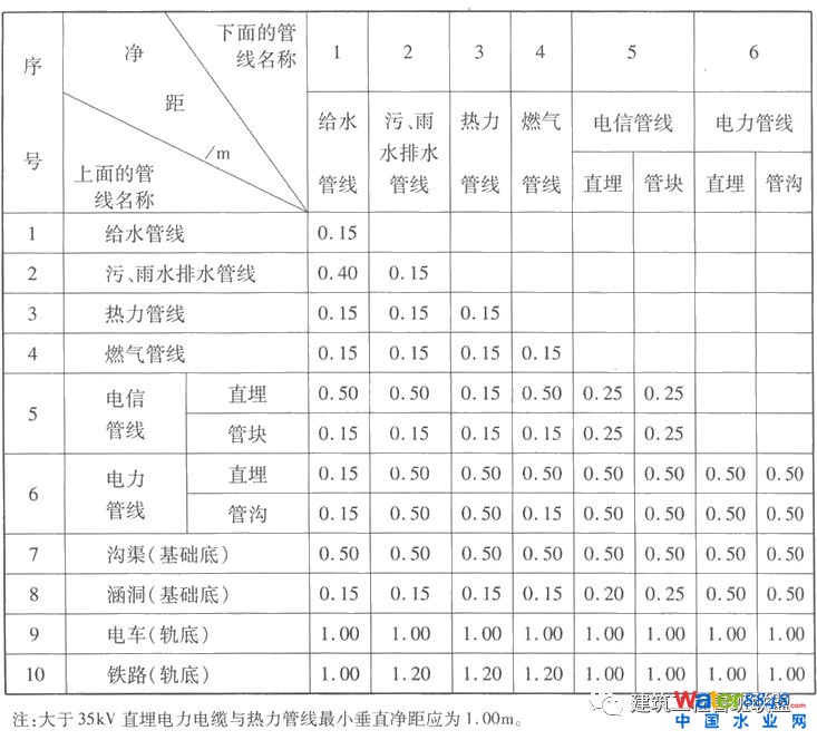 1. 各種工程管線不應在垂直方向重疊直埋敷設