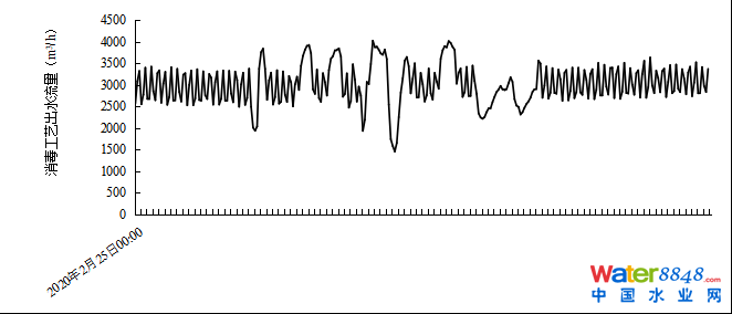 圖7 某城鎮(zhèn)污水處理廠消毒工藝出水流量瞬時曲線