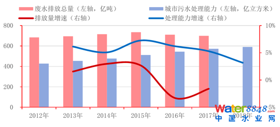 圖5:廢水總排放量與城市污水處理能力(按365天滿功率計(jì))趨勢比較資料來源:生態(tài)環(huán)境部,招商銀行研究院