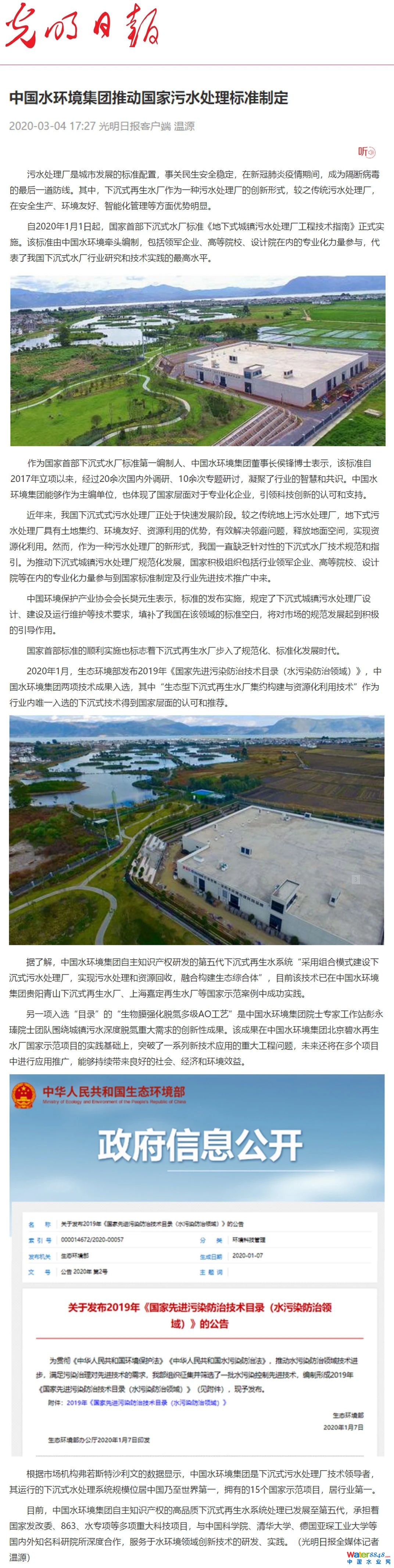 光明日報 | 中國水環(huán)境集團推動國家污水處理標準制定