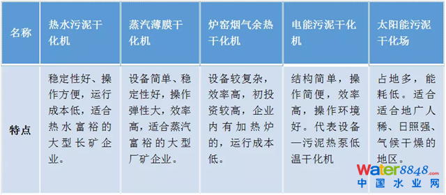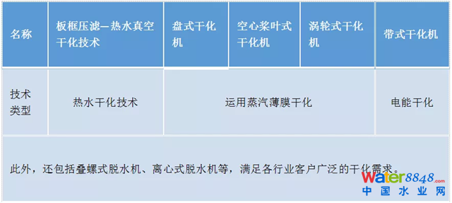 污泥干化可分為機械干化和熱干化兩大類型,機械干化是通過機械脫水設備進行物理干化的工藝,因其發(fā)展歷史悠久,現(xiàn)在市場上已出現(xiàn)板框、槳葉和原盤式干化機。熱干化顧名思義是利用熱源對污泥直接或間接進行水分蒸發(fā)干化,直接制造熱源的成本通常比機械干化高。