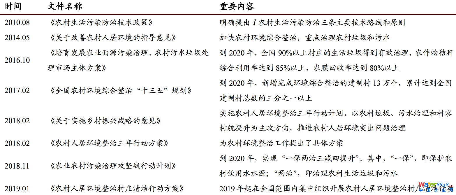 2010-2019年全國農(nóng)村污水處理政策