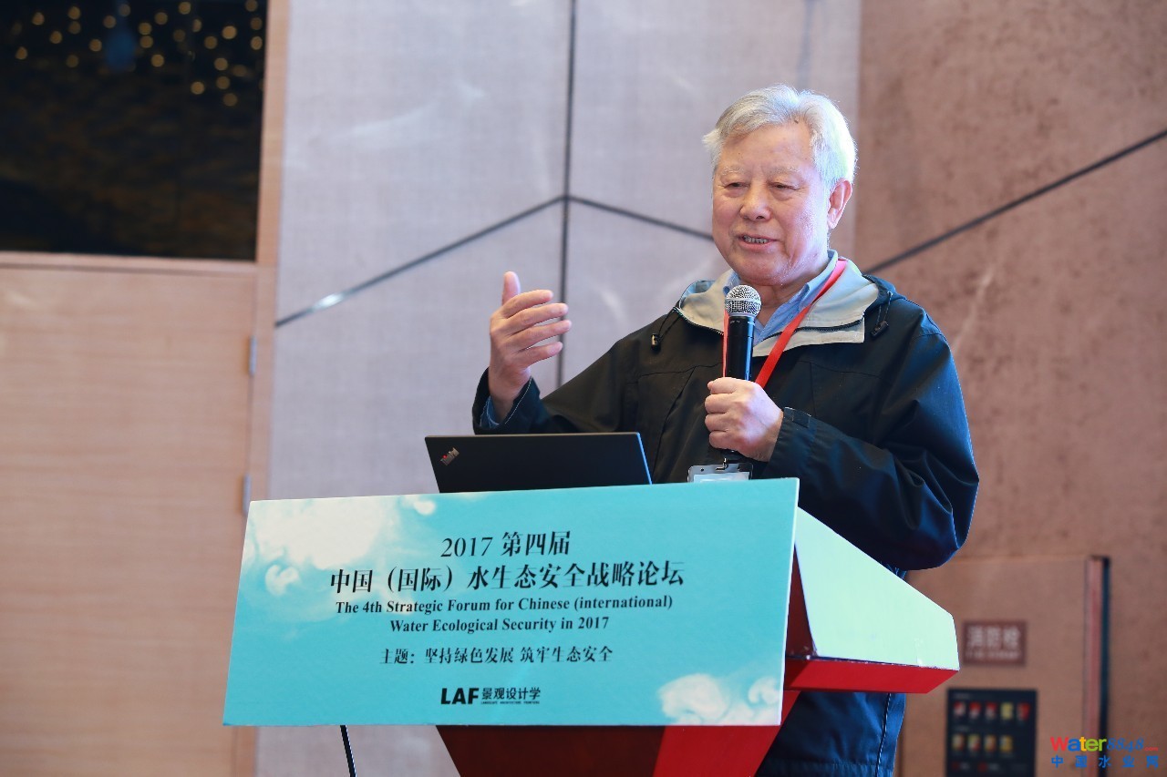 王浩院士率先進(jìn)行了以《水生態(tài)安全戰(zhàn)略》為題的演講。王院士首先為我們介紹了生態(tài)安全、流域水循環(huán)、水生態(tài)安全等基礎(chǔ)概念。隨后聚焦于國家安全體系中的淡水生態(tài)安全,從陸域產(chǎn)流區(qū)中的牧區(qū)草地、農(nóng)牧交錯帶、農(nóng)區(qū)耕地,水域的空間、水文過程、環(huán)境、水生生物,水循環(huán)調(diào)控工程的工程建設(shè)、工程運(yùn)行,以及社會水循環(huán)10個方面,分別提出了十大水生態(tài)安全戰(zhàn)略。其認(rèn)為,應(yīng)充分重視黑臭水體和嚴(yán)重威脅的污染過程的治理。中國目前的達(dá)標(biāo)排放體系尚未完善,從歐洲及北美借鑒來的思路并不完全適應(yīng)于中國國情,還應(yīng)制定符合我國實(shí)際情況的政策指標(biāo)。