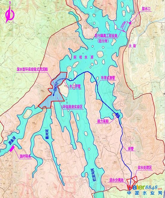 阿哈湖建于1960年,正常庫容5420萬m3。是貴陽市城市供水的主要水源地之一。阿哈湖環(huán)保清淤目的是減少湖泊內(nèi)源污染。本底調(diào)查得知淤泥平均厚度39cm,總淤積量130萬m3。疏浚采用深水環(huán)保型絞吸挖泥船,并輔助排泥管道、接力泵船將污泥輸送到底泥處置場。環(huán)保絞吸式挖泥船可拆卸、分裝,通過陸路車運(yùn)的方式將設(shè)備運(yùn)到施工水域,然后再進(jìn)行水上拼裝。開挖設(shè)計(jì)上主要采用密封吸挖、分層開挖、限速開挖、質(zhì)量監(jiān)控和全封閉輸泥。另外,由于施工不能影響水廠取水,需要對水廠的取水口進(jìn)行適度保護(hù)。清淤輸出底泥輸送至臨時(shí)堆場進(jìn)行干化處理,然后進(jìn)行資源化利用等處理,同時(shí),余水(即廢水)需要進(jìn)行處理達(dá)標(biāo)后還湖。最后,實(shí)施中需要對疏浚施工和底泥及余水處理進(jìn)行風(fēng)險(xiǎn)防范。結(jié)合案例,談兩個(gè)關(guān)于河湖清淤的誤區(qū)。
