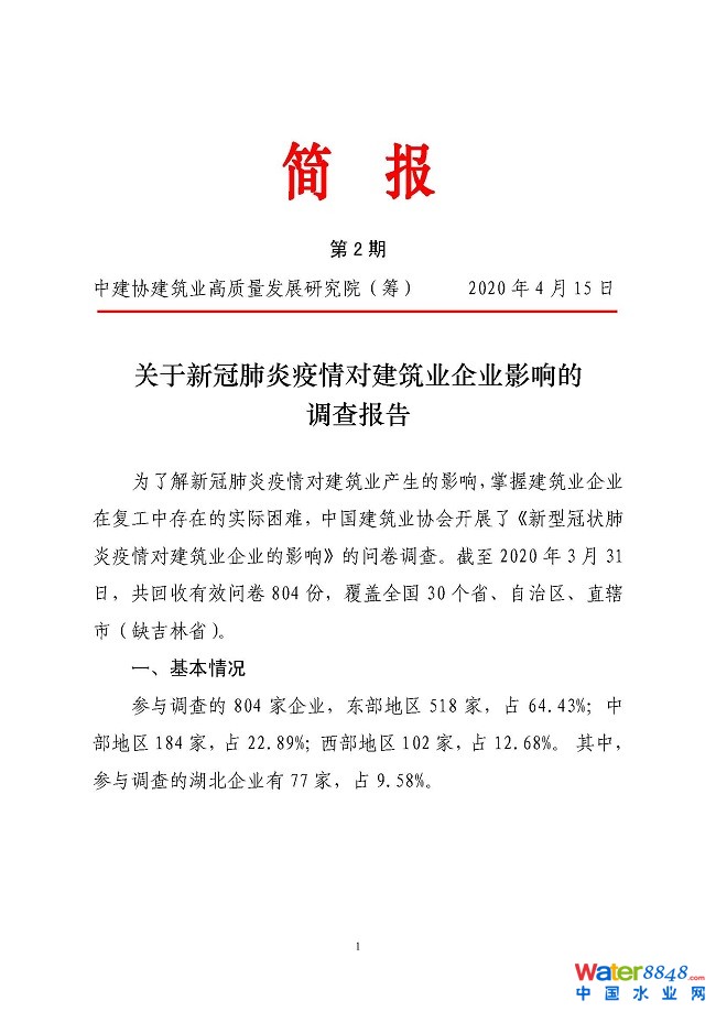 核心提示:關(guān)于新冠肺炎疫情對(duì)建筑業(yè)企業(yè)影響的調(diào)查報(bào)告(中英文)