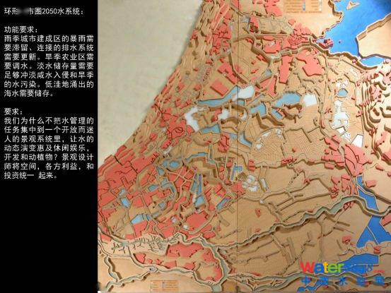 上圖是荷蘭都市圈2050年水系統(tǒng)概念規(guī)劃,大家可以看到在西部大部分的低洼的城市區(qū),要增加很多咸淡水的水庫(kù),以及一些大型的調(diào)蓄設(shè)施,同時(shí)利用這些設(shè)施作為一個(gè)RANDSTAD都市圈的開(kāi)放公共用地,跟周邊市鎮(zhèn)的擴(kuò)張和人們的休閑活動(dòng)進(jìn)行結(jié)合。