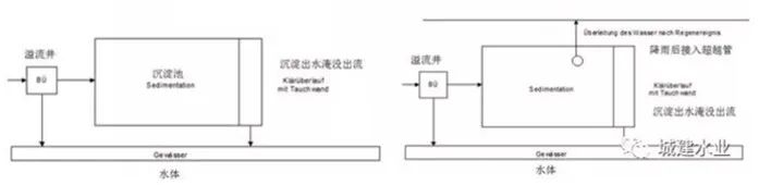 雨水溢流池:在合流制中帶有池子和具有凈化溢流水功能的儲存,和/或者沉淀空間設(shè)施。