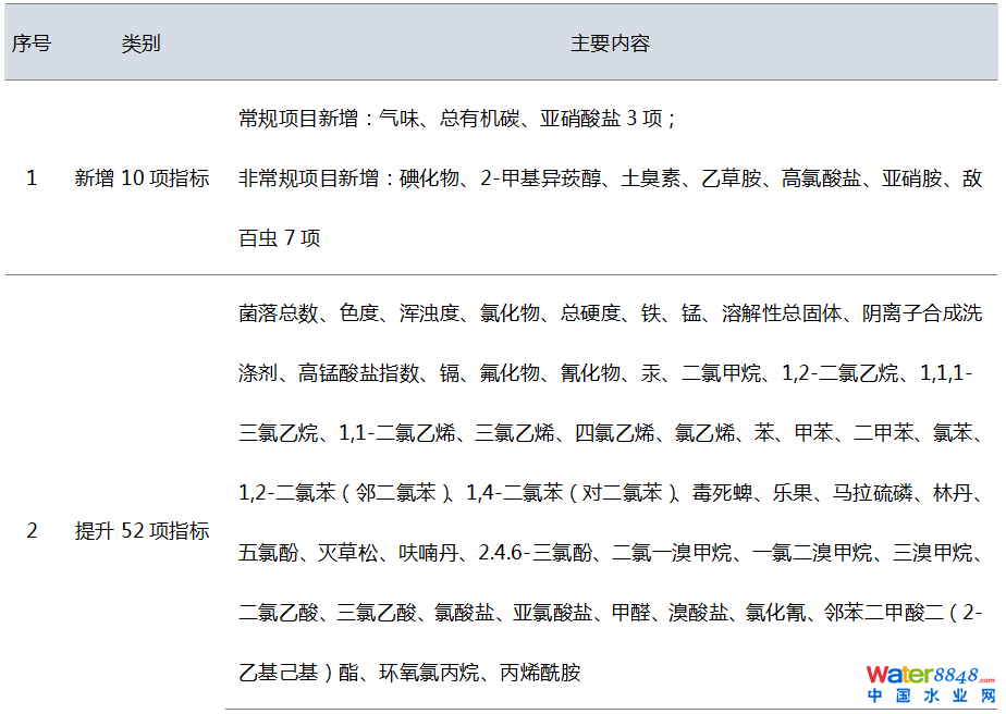 該標(biāo)準(zhǔn)對(duì)標(biāo)世界衛(wèi)生組織(WHO)、歐盟、美國(guó)、日本等先進(jìn)飲用水水質(zhì)標(biāo)準(zhǔn),結(jié)合我市水質(zhì)特點(diǎn),提出了適應(yīng)我市的供水水質(zhì)指標(biāo)和限值,并對(duì)水質(zhì)管控提出要求, 標(biāo)準(zhǔn)包含水質(zhì)指標(biāo)116項(xiàng),其中常規(guī)指標(biāo)52項(xiàng),非常規(guī)指標(biāo)64項(xiàng)。