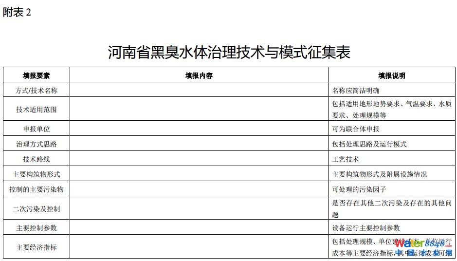 附件2 河南省黑臭水體治理技術(shù)與模式征集表