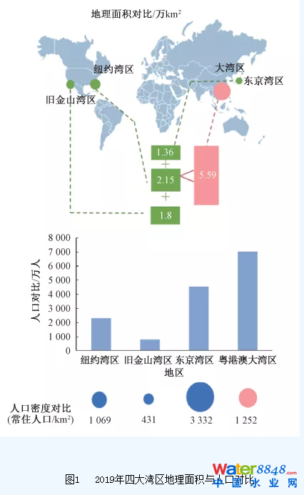 圖1 2019年四大灣區(qū)地理面積與人口對比