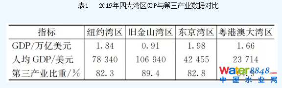 表1 2019年四大灣區(qū)GDP與第三產(chǎn)業(yè)數(shù)據(jù)對比