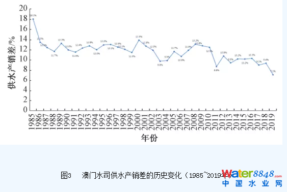 圖3 澳門水司供水產(chǎn)銷差的歷史變化(1985~2019年)