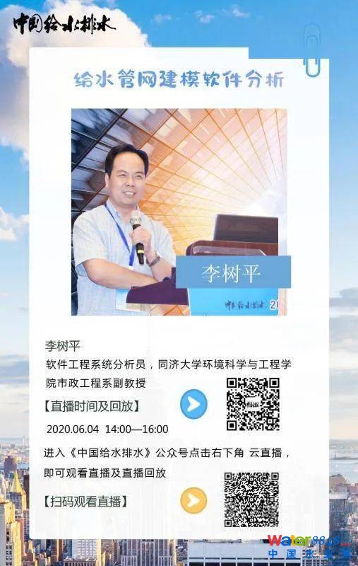 (微信名稱:中國給水排水 微信號:cnww1985;掃描二維碼進(jìn)入中國給水排水微信公眾號cnww1985,首頁右下角,點(diǎn)擊 云直播 ,即可觀看直播、直播回放以及近期直播預(yù)告。 )