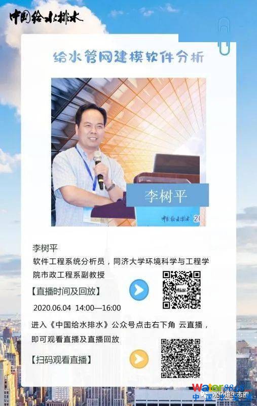本周四(6月4日)下午14:00-16:00,題目:給水管網(wǎng)建模軟件分析,時(shí)間:2020年 6月4日,主講人:李樹平,工學(xué)博士,系統(tǒng)分析員,同濟(jì)環(huán)境科學(xué)與工程學(xué)院 副教授 。 “給水管網(wǎng)建模軟件分析…