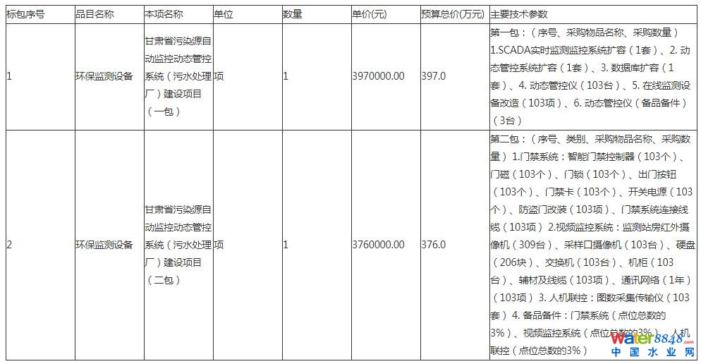 甘肅省生態(tài)環(huán)境調(diào)查中心甘肅省污染源自動監(jiān)控動態(tài)管控系統(tǒng)(污水處理廠)建設(shè)項目公開招標公告