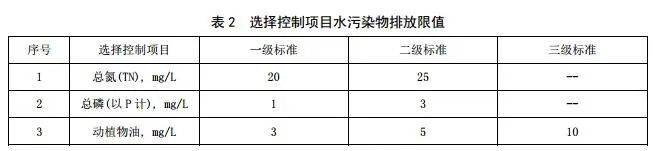 5.3.2 水污染物的選擇控制項目共 3 項,分別為總氮、總磷和動植物油。