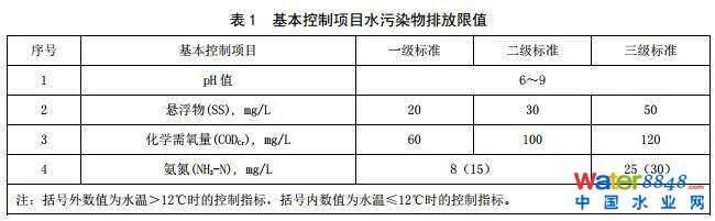 5.4.1 水污染物排放基本控制項目,執(zhí)行表 1 的規(guī)定。