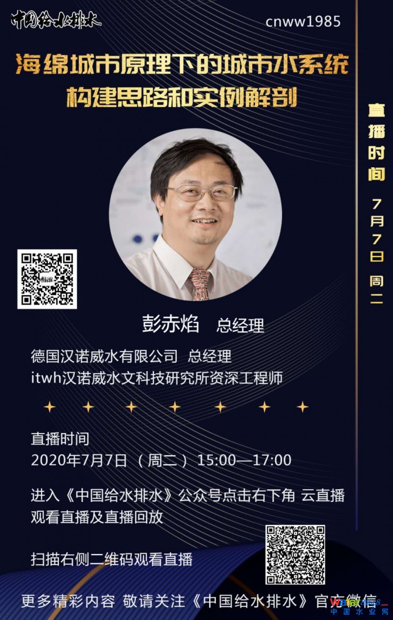 言歸正傳,下面進入直播主題: 今天我們很榮幸地邀請到了 德國漢諾威水有限公司 彭赤焰 總經(jīng)理:彭赤焰 總經(jīng)理的 直播題目為: 海綿城市原理下的城市水系統(tǒng)構(gòu)建思路和實例解剖