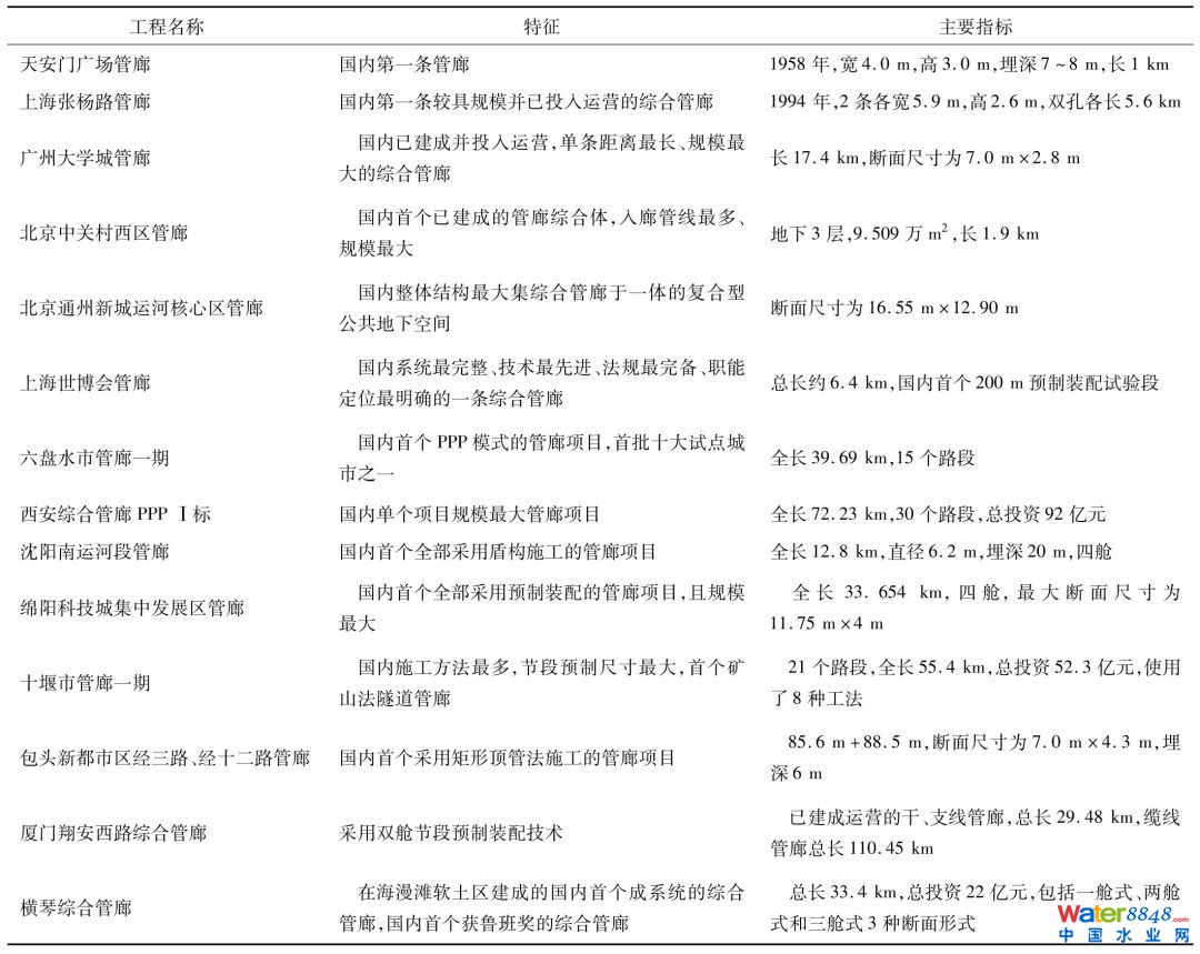 經(jīng)過幾十年的建設(shè)實(shí)踐,我國的綜合管廊建設(shè)規(guī)模及數(shù)量已經(jīng)超過了歐美發(fā)達(dá)國家,成為了管廊的超級(jí)大國,也涌現(xiàn)出一些典型的案例,見表1。