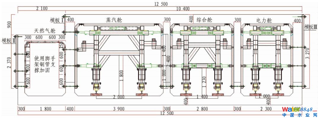 圖1 單艙可移動(dòng)模板(單位:mm)