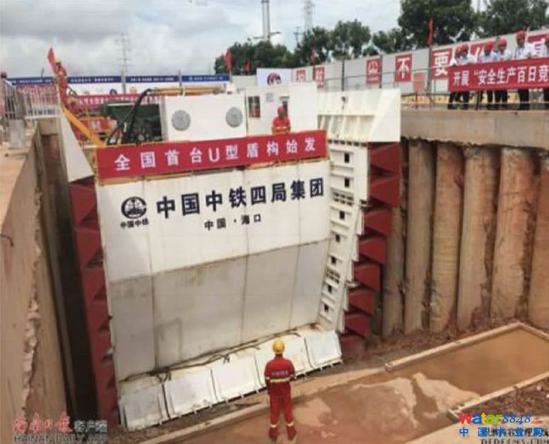 5)新型管廊施工機(jī)械不斷出現(xiàn)。隨著管廊項(xiàng)目規(guī)模的不斷擴(kuò)大,出現(xiàn)了越來越多的新型管廊施工機(jī)械,例如: 代替大型吊車的雙向自行走桁架吊裝系統(tǒng),解決預(yù)制構(gòu)件拼裝精度問題的預(yù)制管廊拼裝車(見圖5),用于明挖的U型盾構(gòu)(見圖6),集開挖支護(hù)、構(gòu)件拼裝和基坑回填于一體的移動(dòng)護(hù)盾管廊建造機(jī)(見圖7),可以在很大程度上減輕工人的勞動(dòng)強(qiáng)度,降低施工技術(shù)難度。