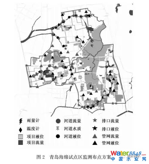 青島海綿試點(diǎn)區(qū)規(guī)劃布設(shè)359個(gè)在線監(jiān)測(cè)點(diǎn),通過試點(diǎn)區(qū)范圍內(nèi)精細(xì)化的在線監(jiān)測(cè),進(jìn)行基礎(chǔ)數(shù)據(jù)的積累,可為青島市海綿城市的進(jìn)一步推進(jìn)與擴(kuò)展提供基礎(chǔ)。后期的監(jiān)測(cè)考核,可通過已有數(shù)據(jù)進(jìn)行模型參數(shù)的率定和識(shí)別,從而減少部分在線監(jiān)測(cè)布點(diǎn),實(shí)現(xiàn)模型對(duì)建設(shè)效果評(píng)估的支持。