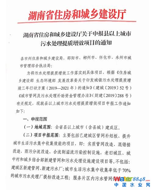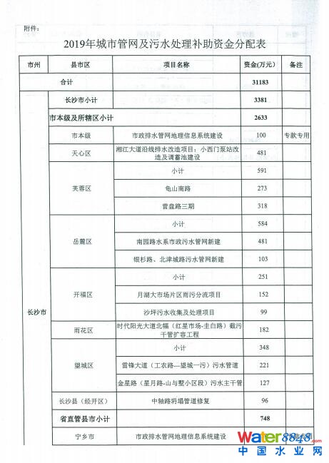 湖南:2019年城市管網(wǎng)及污水處理補(bǔ)助資金安排方案