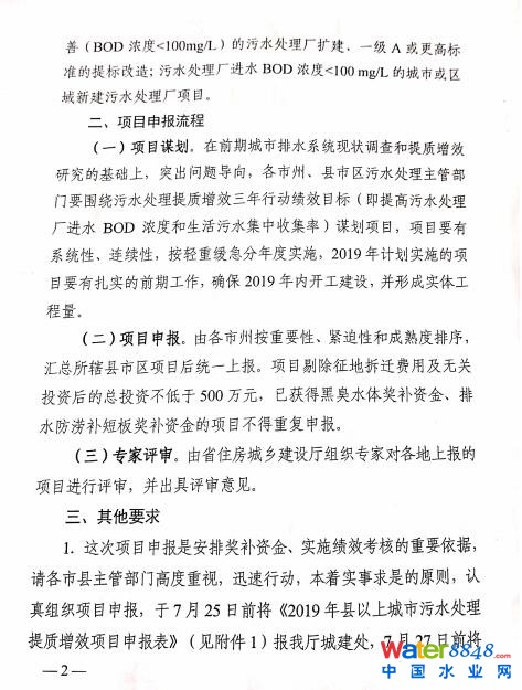 1.項(xiàng)目篩選。各市州污水處理主管部門(mén)7月份共上報(bào)2019年度污水處理提質(zhì)增效項(xiàng)目349個(gè),我廳組織對(duì)項(xiàng)目進(jìn)行初步篩選,按以下條件確定符合要求的項(xiàng)目: