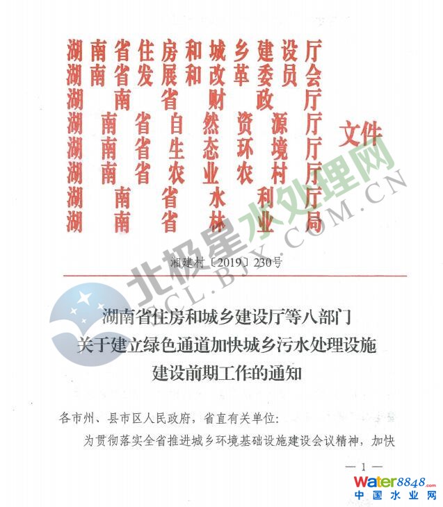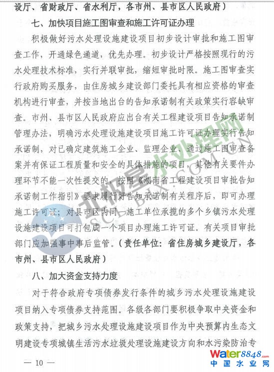 湖南:關于建立綠色通道加快城鄉(xiāng)污水處理設施建設前期工作的通知
