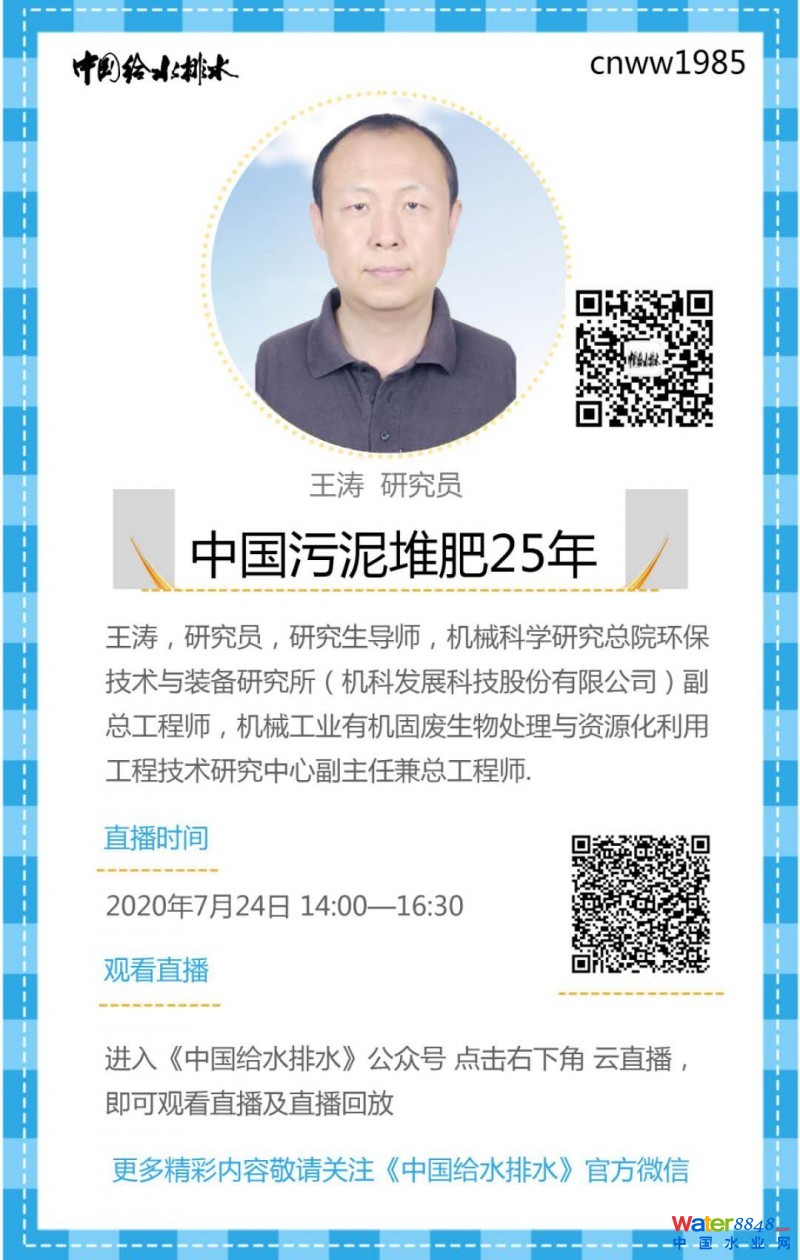 言歸正傳,下面進入直播主題: 今天我們很榮幸地邀請到了 王濤 研究員 :王濤 研究員 的直播題目為:中國污泥堆肥25年