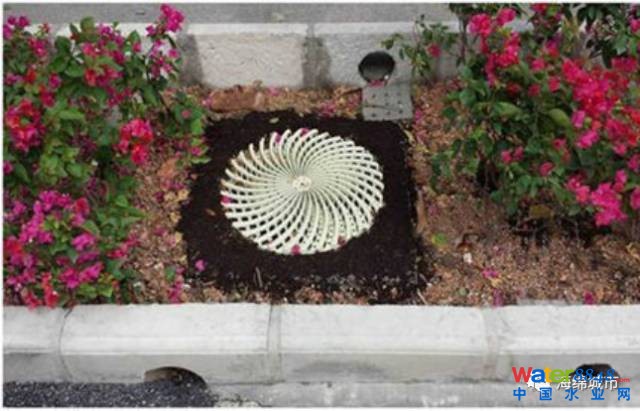 下沉式綠地內(nèi)設(shè)置有雨水溢流口,且雨水溢流口高程在綠地與地面高程之間。由于下沉式綠地高程較低,硬化地面上的雨水會流向綠地,在綠地上匯聚,綠地上的植物、土壤會截流和凈化雨水,無法容蓄的雨水會排入雨水管網(wǎng),作為地下水的補充。
