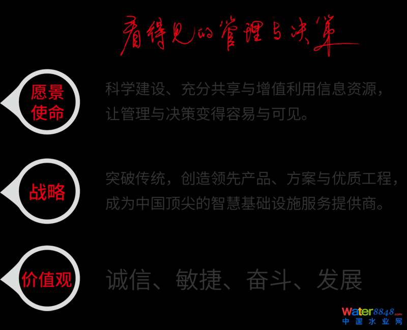 公司遵循“科學(xué)建設(shè)、充分共享與增值利用信息資源,讓管理與決策變得容易與可見”的愿景使命,建設(shè)精益生產(chǎn)、敏捷開發(fā)與解決方案銷售的核心競爭力,提供智慧城市基礎(chǔ)設(shè)施的規(guī)劃設(shè)計、咨詢、勘測、軟硬件生產(chǎn)、養(yǎng)護(hù)、定制開發(fā)與集成服務(wù)。