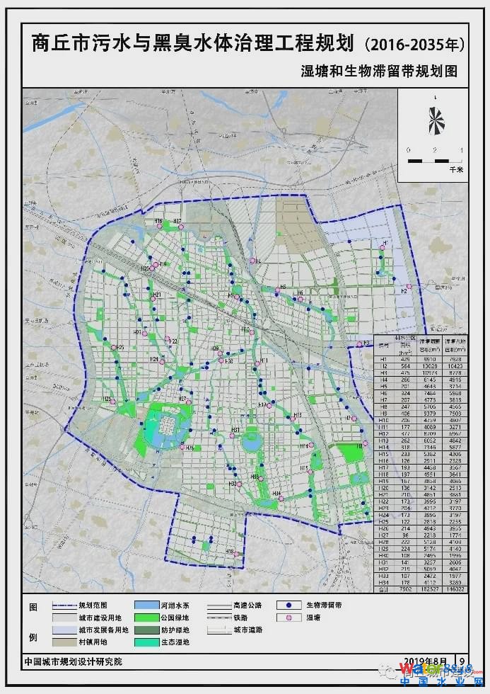 規(guī)劃在商丘市中心城區(qū)建設(shè)人工濕地共13處,分為濕地公園和河道濕地兩類。人工濕地的選址主要在河岸附近具備建設(shè)條件的大型公園、綠地等,河道再生水補(bǔ)水點(diǎn)處及主要水系出城邊界處的生態(tài)綠地等。