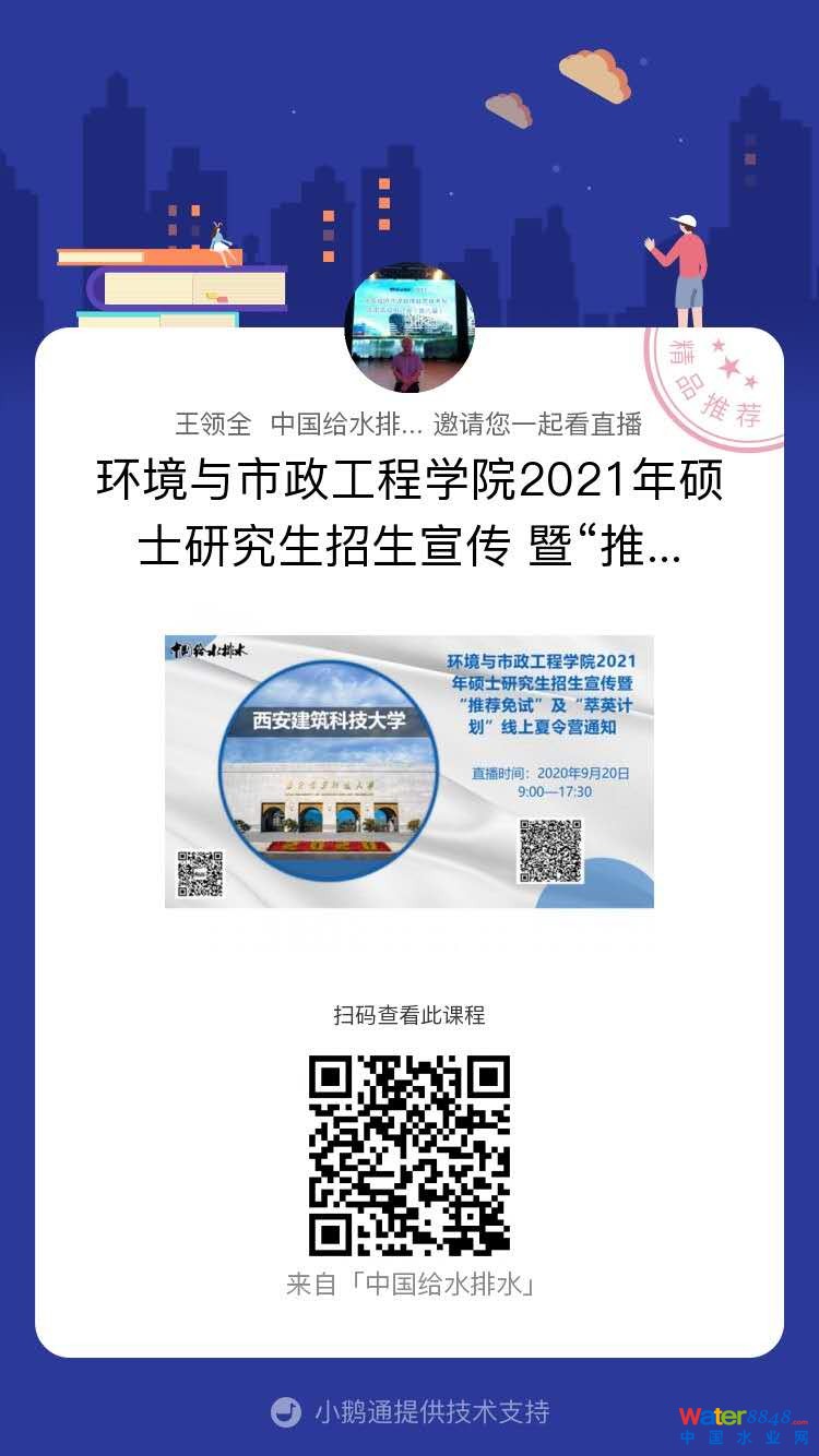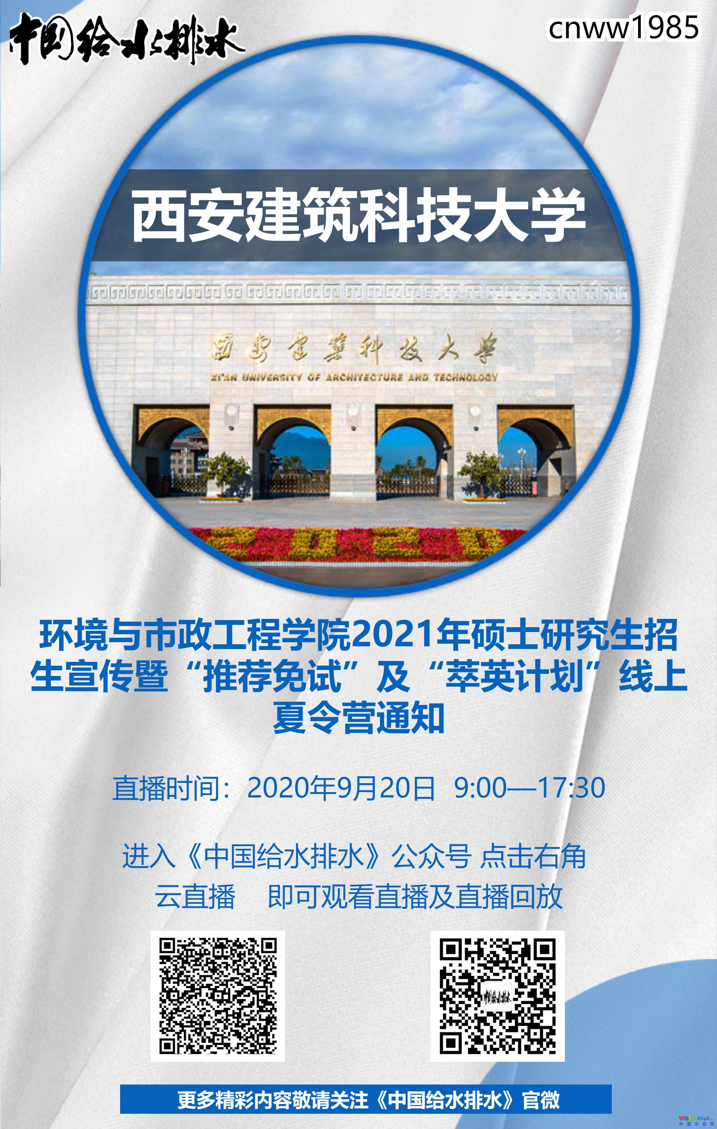 西安建筑科技大學(xué)環(huán)境與市政工程學(xué)院2021年碩士研究生招生宣傳暨“推薦免試”及“萃英計劃”線上夏令營通知