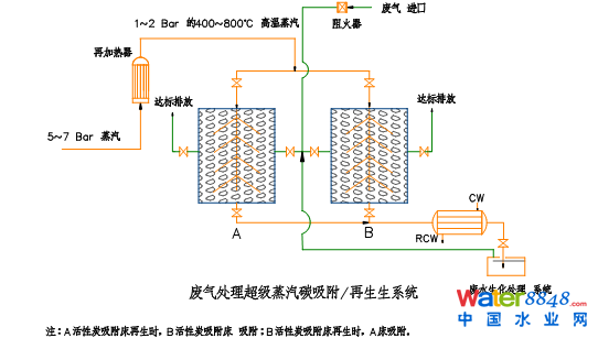 超級蒸汽碳系統(tǒng)吸附及再生脫附流程