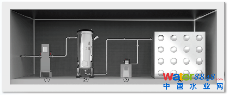 ① 蒸汽發(fā)生器及再熱器 + ② 活性炭自動再生器 + ③換熱器及廢氣處理裝置+ ④ 蒸汽凝水收集處理槽
