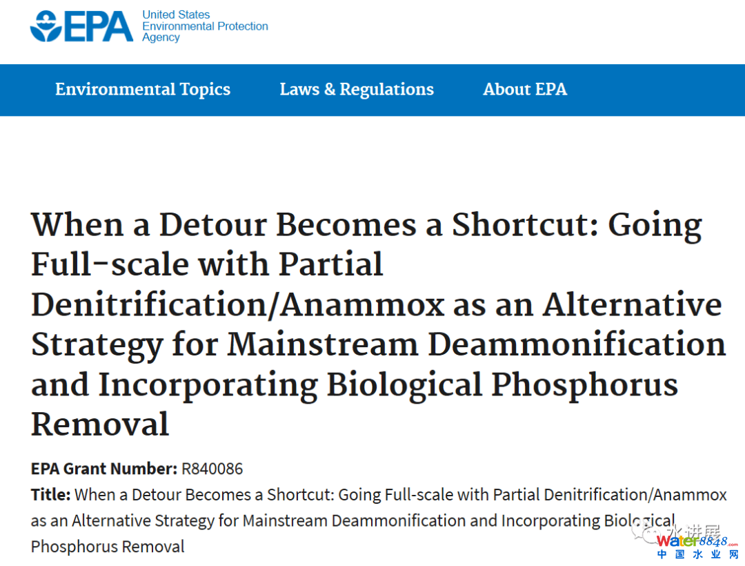 美國EPA啟動短程反硝化(PnDN)-Anammox的Full-scale示范項目