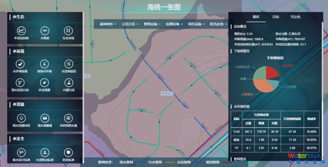 一、構(gòu)建了一套全指標(biāo)、全過(guò)程、全覆蓋、全方位服務(wù)三亞海綿城市建設(shè)的信息化服務(wù)平臺(tái),實(shí)現(xiàn)了三亞海綿城市從規(guī)劃、設(shè)計(jì)、施工到運(yùn)營(yíng)全生命周期的智慧化評(píng)估和管控。