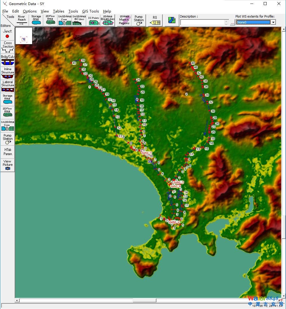 基于先進(jìn)的TMDL理念構(gòu)建了三亞流域-排水管網(wǎng)-河網(wǎng)耦合模型,綜合評(píng)估三亞市海綿城市現(xiàn)狀條件并為內(nèi)澇預(yù)警、設(shè)計(jì)方案評(píng)估提供決策依據(jù)。其中包括:350平方公里的流域模型;80個(gè)海綿城市建設(shè)項(xiàng)目模型;31.5km2的城市建成區(qū)排水管網(wǎng)模型;3條河道(湯他水、三亞西河、三亞東河)的河道水動(dòng)力水質(zhì)模型。