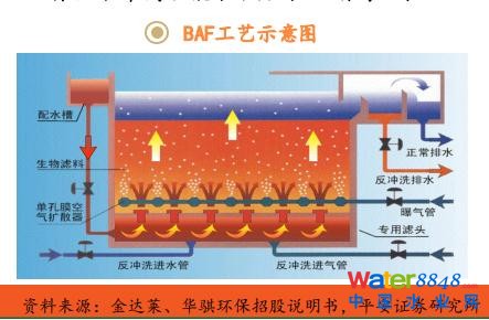 曝氣生物濾池(BAF)工藝是從20世紀80年代末起,在普通生物濾池的基礎上,對生物膜反應器結構、濾料載體及曝氣系統(tǒng)創(chuàng)新改進、增設反沖洗系統(tǒng)的新型污水處理工藝,其實現(xiàn)了自動化控制,能承載的水力負荷和有機負荷相較活性污泥法大幅提升。BAF工藝在歐美和日本等發(fā)達國家廣為流行,目前隨著我國對排水標準的提高,越來越多地用在了污水廠提標改造上。