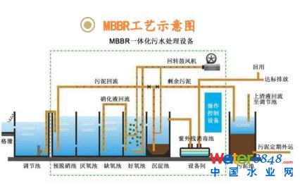 移動床生物膜反應器(MBBR)工藝是一種高效的利用微生物進行污水處理的技術,通過向反應器中投加一定數(shù)量的懸浮載體,提高反應器中的生物量及生物種類,從而達到提高反應器的處理效率和效果。該工藝具有凈化效果好、出水水質高、裝備化水平高、能耗低、占地省等優(yōu)點。