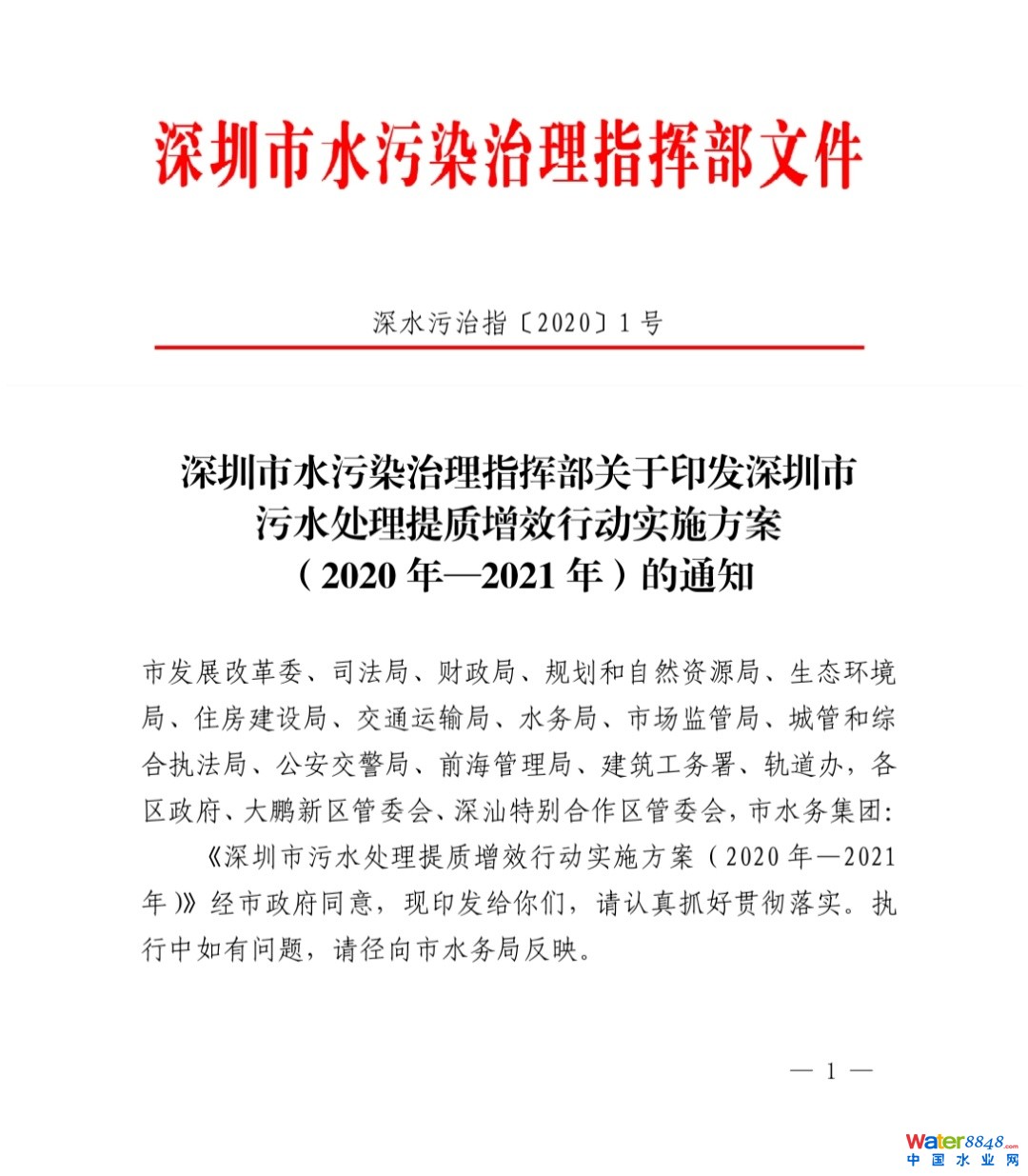 核心提示:深圳市水污染治理指揮部關(guān)于印發(fā)深圳市污水處理提質(zhì)增效行動實施方案(2020 年—2021 年)的通知
