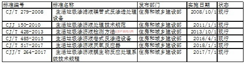 ——《生活垃圾滲瀝液卷式反滲透設(shè)備》(CJ/T 485-2015)。本標(biāo)準(zhǔn)規(guī)定了生活垃圾滲瀝液卷式反滲透設(shè)備的術(shù)語和定義、型號(hào)與標(biāo)記、材料、使用條件、要求、試驗(yàn)方法、檢驗(yàn)規(guī)則、標(biāo)志、包裝、運(yùn)輸和貯存。 本標(biāo)準(zhǔn)適用于處理生活垃圾滲瀝液的卷式反滲透設(shè)備。