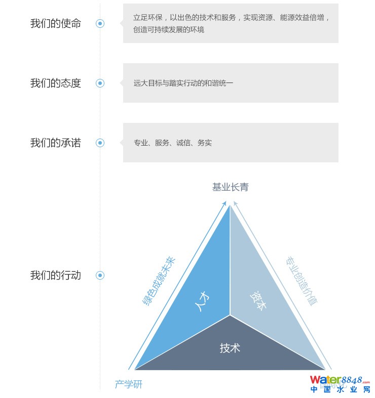公司以“市場(chǎng)-技術(shù)-人才-資本”的良性互動(dòng)為基礎(chǔ),以持續(xù)的創(chuàng)新能力參與并引領(lǐng)競(jìng)爭(zhēng),以專(zhuān)業(yè)的工作精神為客戶(hù)創(chuàng)造價(jià)值,以特色和品牌為社會(huì)提供優(yōu)質(zhì)服務(wù),扎實(shí)地為我國(guó)環(huán)保事業(yè)做出貢獻(xiàn),為創(chuàng)造更加綠色的未來(lái)而不懈奮斗。、