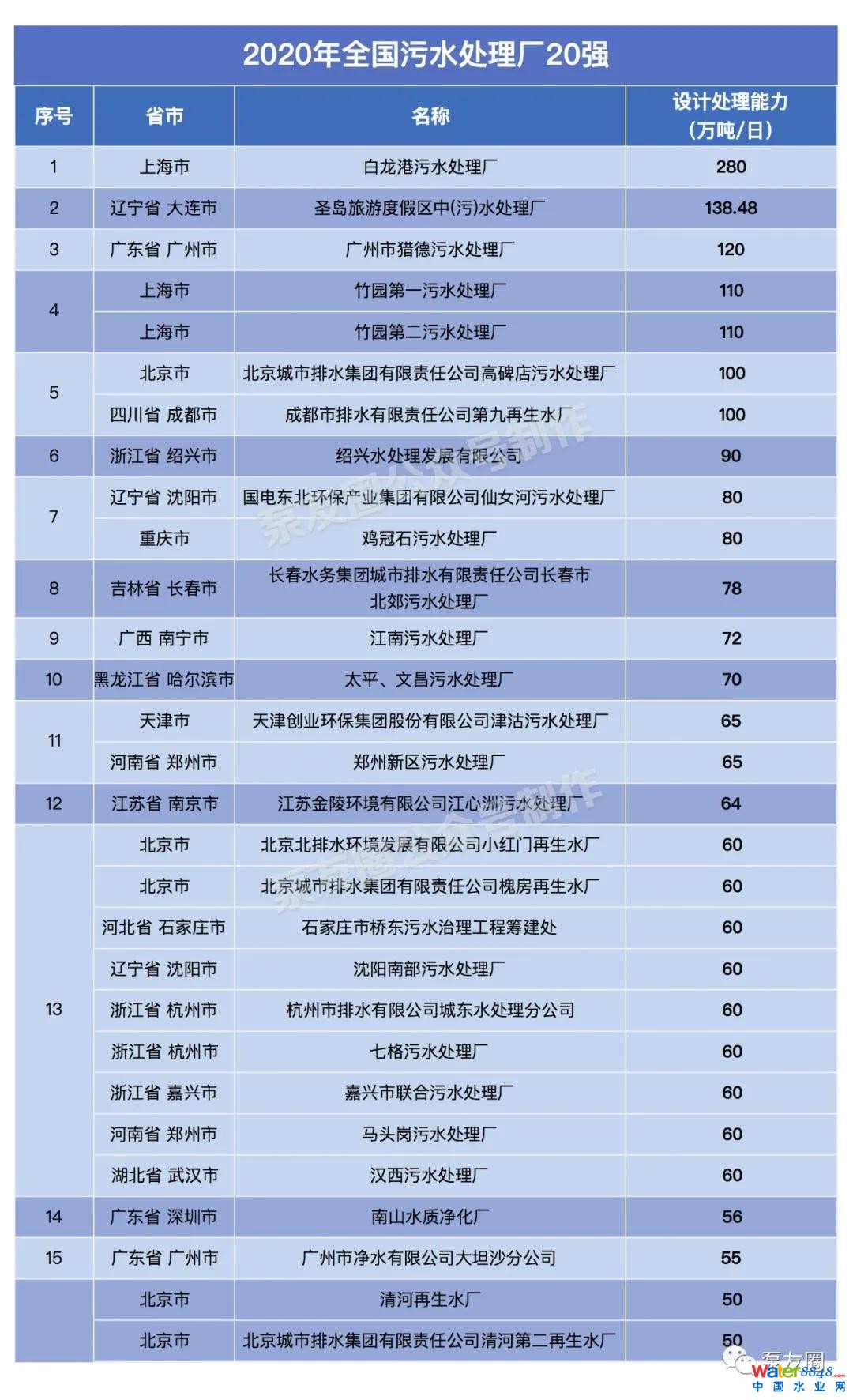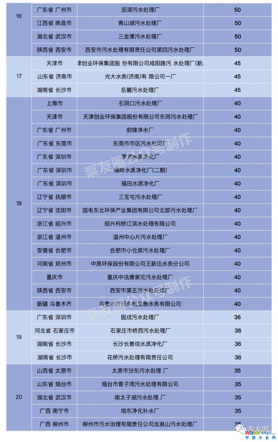 對于全國超過1萬座的污水處理廠,泵友圈整理出前20強(qiáng)榜單。