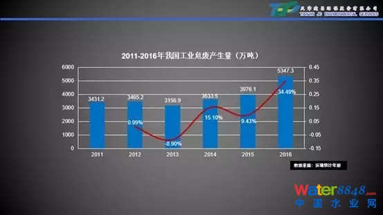 魏新慶表示,2016年,國家公開的數(shù)據(jù)顯示,我國危廢產(chǎn)量有5300多萬噸,近兩年危廢產(chǎn)生量增速加快;2016年我國工業(yè)固廢產(chǎn)量30.9億噸,危廢產(chǎn)量占整個工業(yè)固廢的比例為1.7%。英國危廢/工業(yè)固廢的占比達(dá)10%,挪威8%,瑞士7%,由此看出,與發(fā)達(dá)國家相比,我國危廢產(chǎn)量相對較低,如按照4%的固廢產(chǎn)危廢的比例計算,我國危廢的年產(chǎn)量應(yīng)在1.2億噸以上,遠(yuǎn)高于目前的統(tǒng)計數(shù)據(jù)。