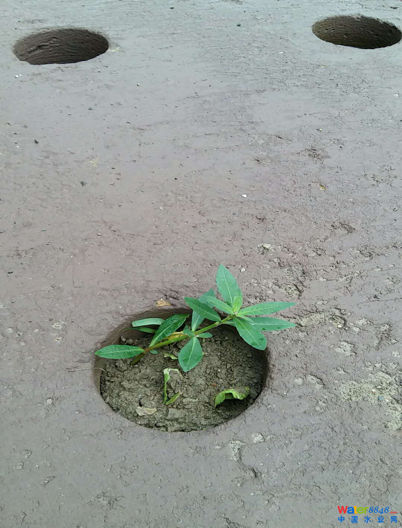 清鎮(zhèn)市改性赤泥試驗(yàn)場(chǎng)取芯孔長(zhǎng)出新植物
