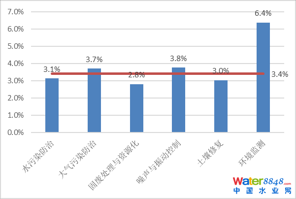 圖5 2019年環(huán)保企業(yè)各領(lǐng)域企業(yè)研發(fā)經(jīng)費(fèi)占營業(yè)收入比重