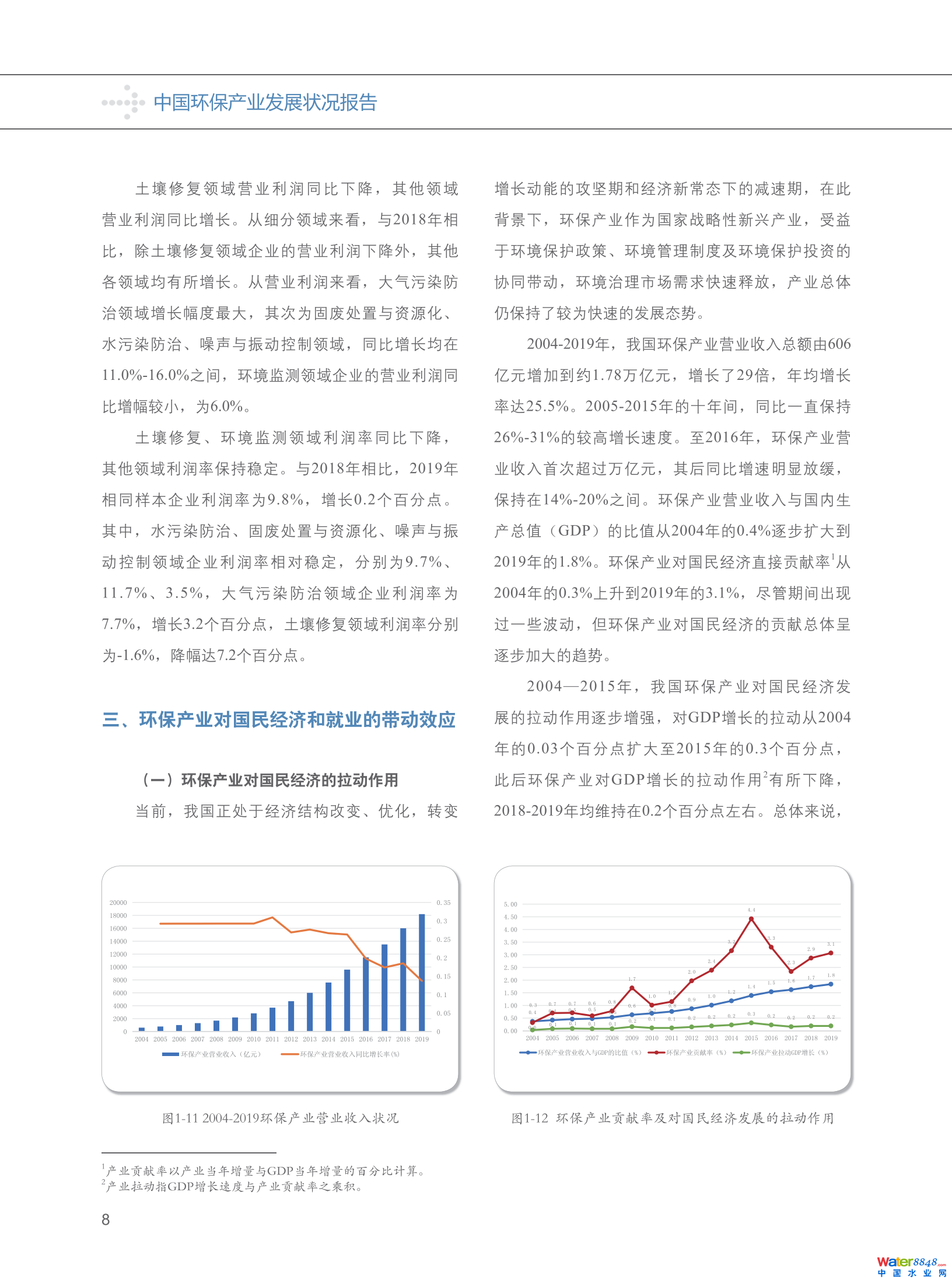 三、環(huán)保產(chǎn)業(yè)對(duì)國民經(jīng)濟(jì)及就業(yè)的貢獻(xiàn)逐步提升